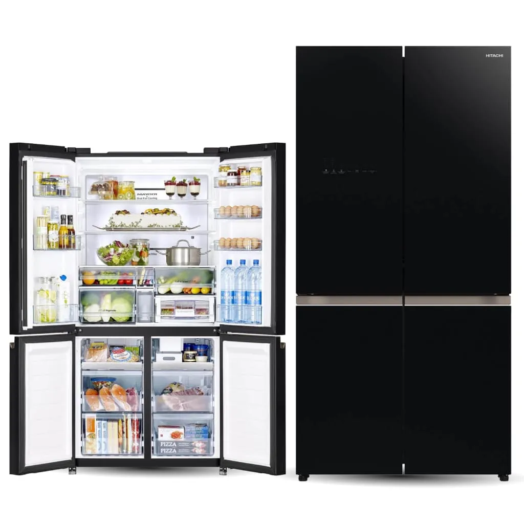 ثلاجة هيتاشي 4 ابواب اسود زجاج